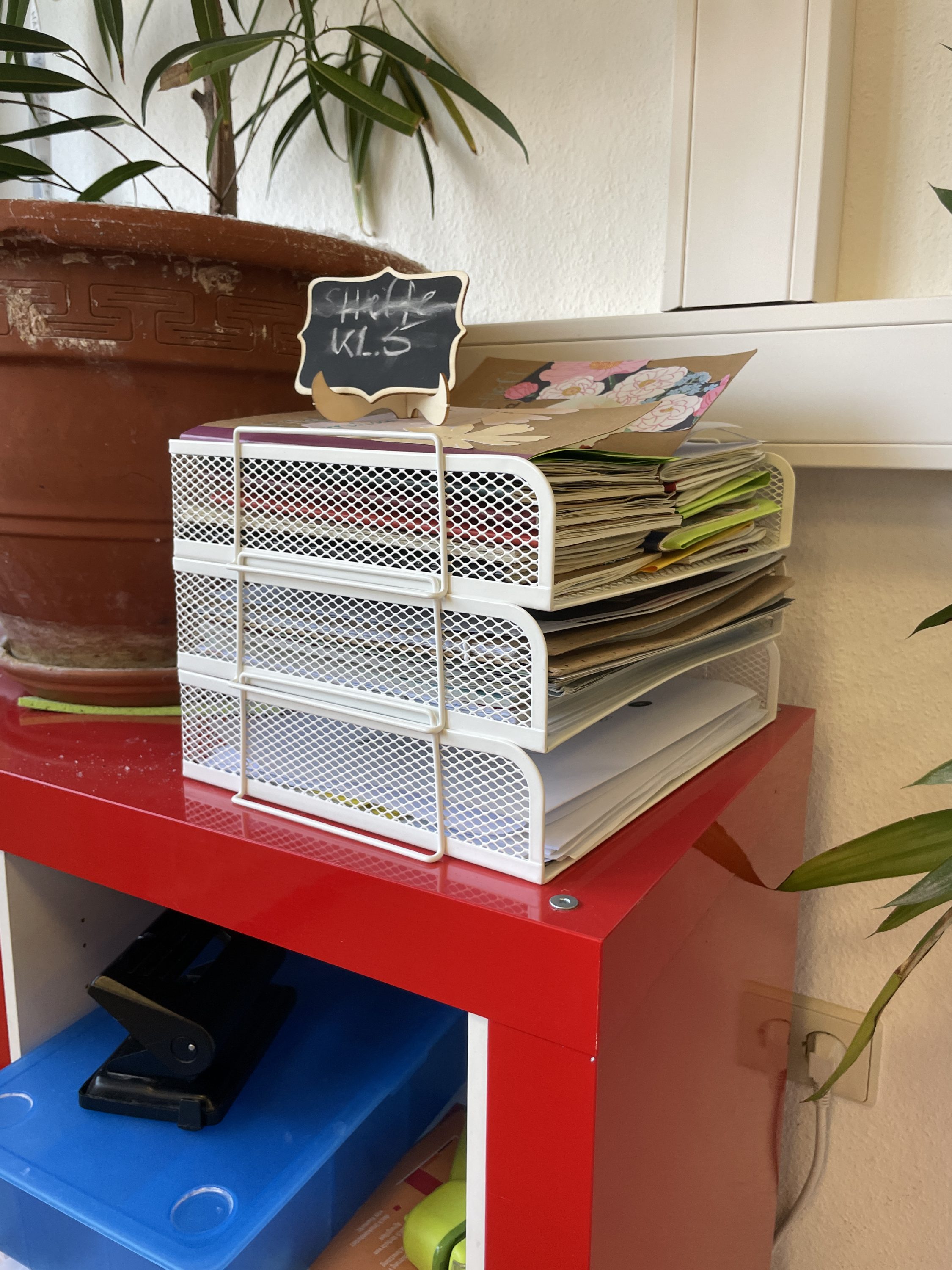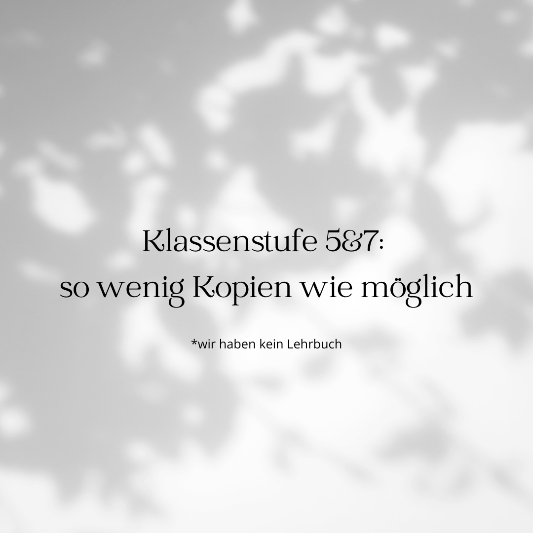 Klassenstufe 5 & 7: so wenig Kopien wie möglich. Da wir kein Buch haben, versuchte ich mit anderen Medien (Lernstationen, Spiele, Projekte, Bücher, online), die Inhalte an die Schülerinnen und Schüler ran zu tragen. Außerdem gab ich das jeweilige „Sammelmedium“ vor – konkret hatte ich für die Klasse 5 linierte A5-Hefte und für die Klasse 7 Ordner. Für alles gab es in der Schule einen Platz, sodass das nicht mit hin und her getragen werden musste.
