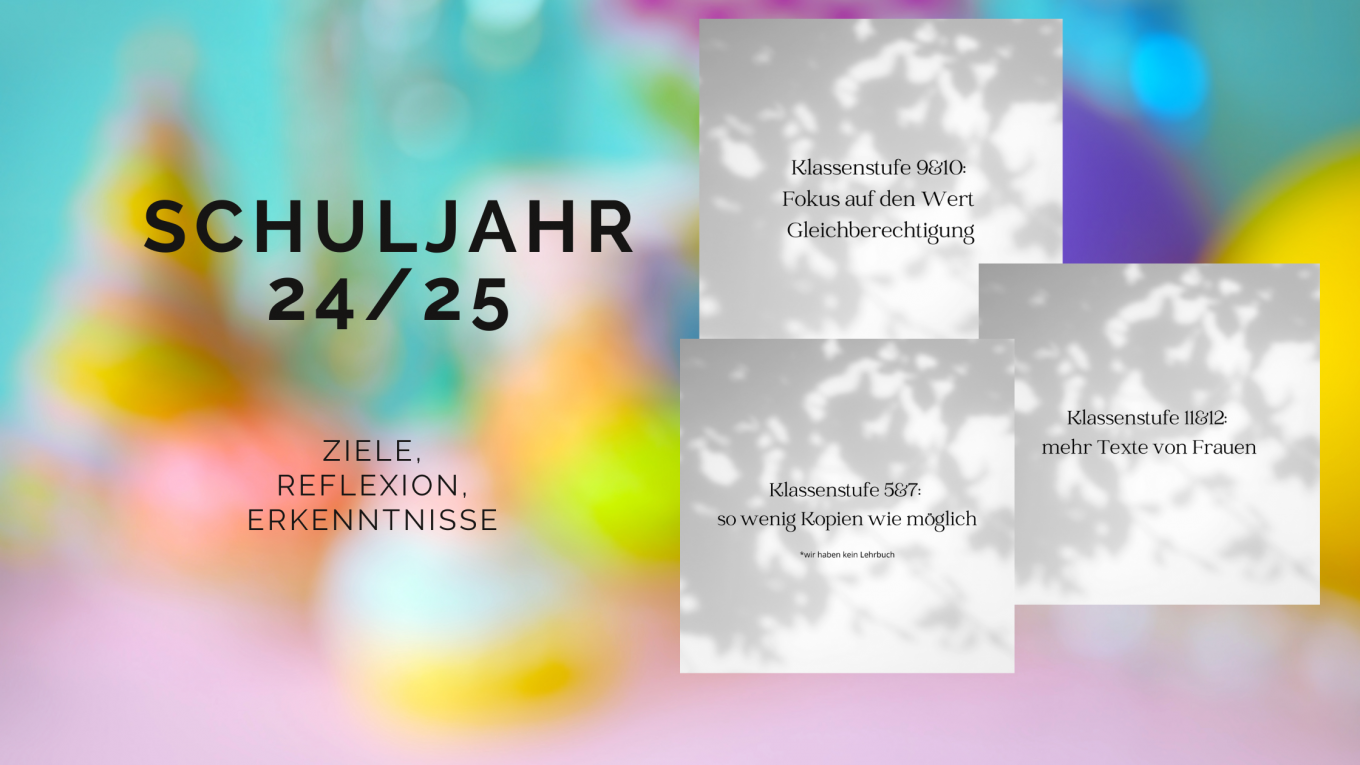Beide Klassenstufen haben im ersten Halbjahr ein Portfolio zu einem Text aus den Unlearn Patriarchy-Büchern erstellt. Dazu habe ich hier schonmal geschrieben. Hier ist das OER-Material dazu. Die Portfolios zeigten teilweise eine sehr tiefgründige Auseinandersetzung mit dem jeweiligen Thema. Auch die Aufgaben dazu, der Projekt-Charakter und auch der Druck, sich mit dem Thema auseinander zu setzen, waren aus meiner Sicht hilfreich, raus aus der Komfortzone zu denken und zu arbeiten. Deshalb werde ich das so in der Form im kommenden Schuljahr fortführen. Die neue 10. Klasse bekommt die gleichen Texte, muss sich aber einen neuen aussuchen. Vielleicht schaffe ich es auch in den Ferien, noch mehr aufzubereiten. Zusätzlich werde ich die Prozessbesprechungen ausweiten und auch eine Reflexionsphase (sowohl individuell als auch mit Feedback für die Arbeitsweise) mit einführen.